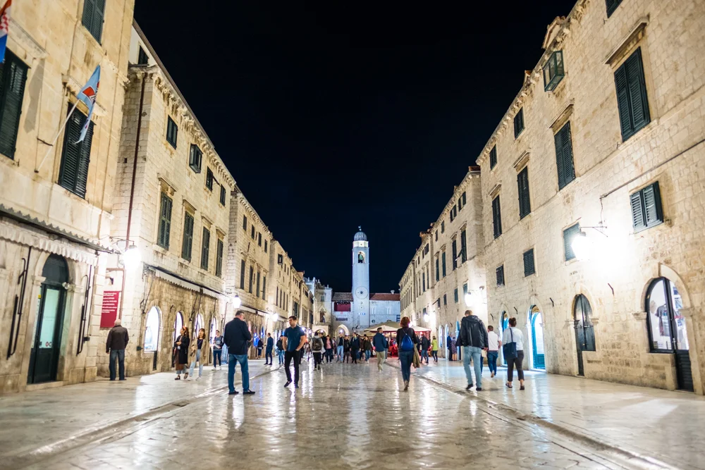 The main street of Old Town Dubrovnik at night